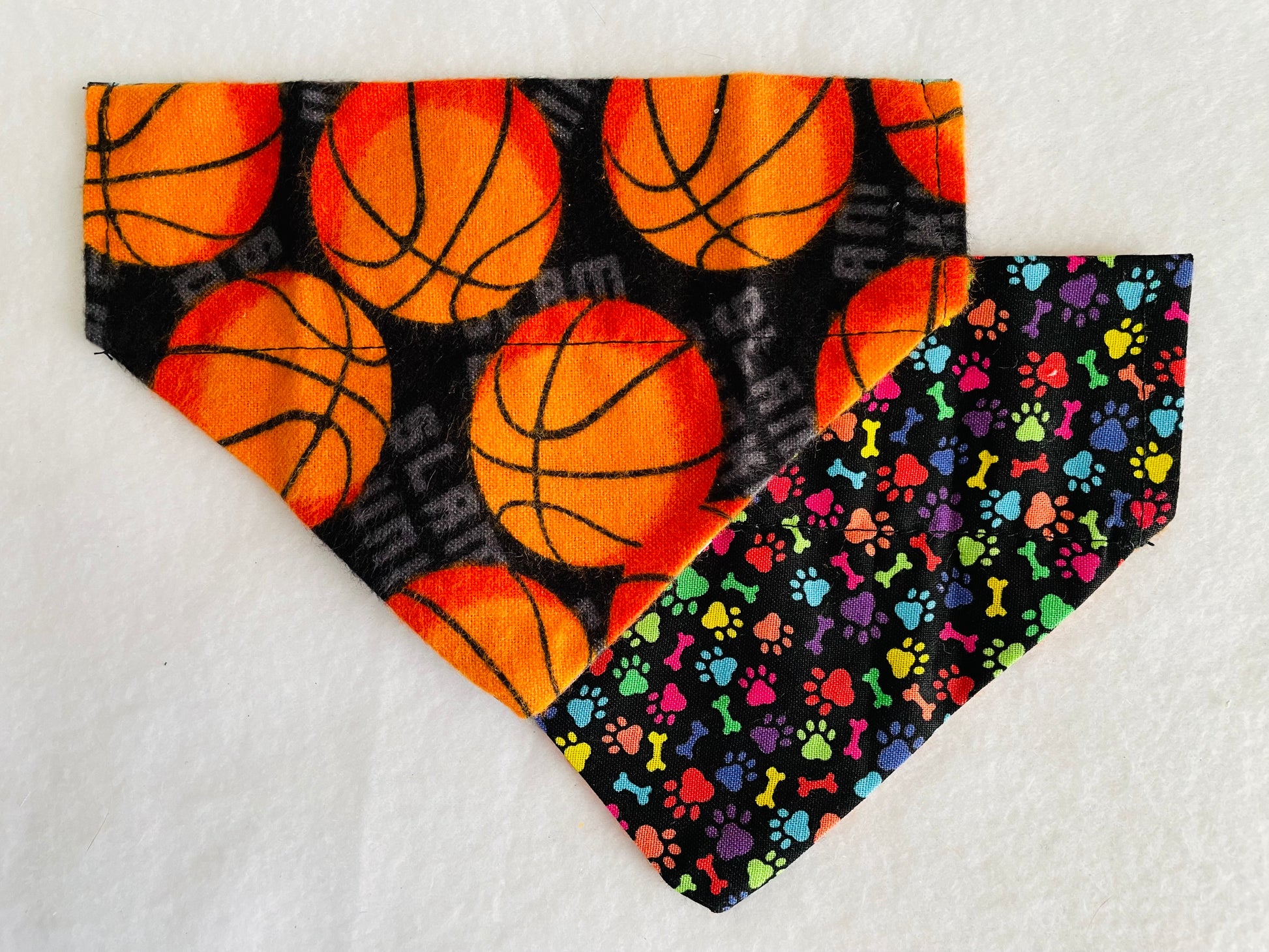 Reversible Bandana: Basketballs on one side and Multi-Colored Pawprints & Bones on the other side
