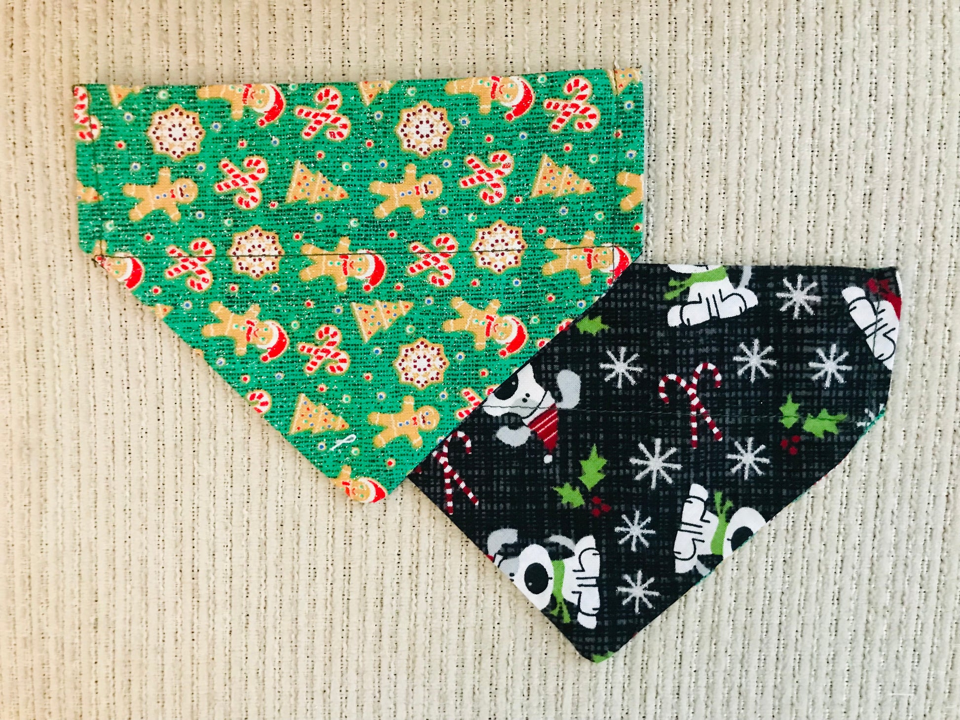 Reversible Bandana: Candy Canes & Gingerbread Men on one side and Christmas Dogs (Black background) on the other side