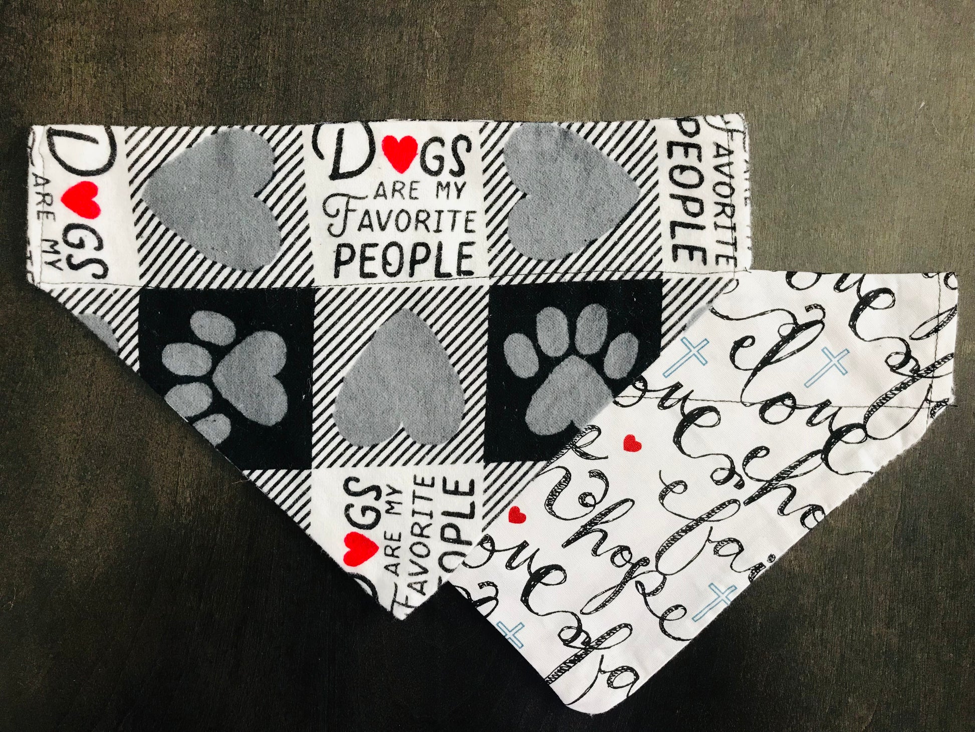 Reversible Bandana: Dogs Are My Favorite People are on one side and Faith*Hope*Love on the other side