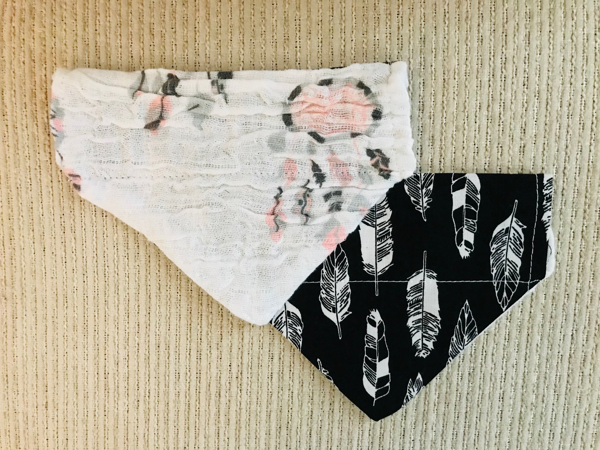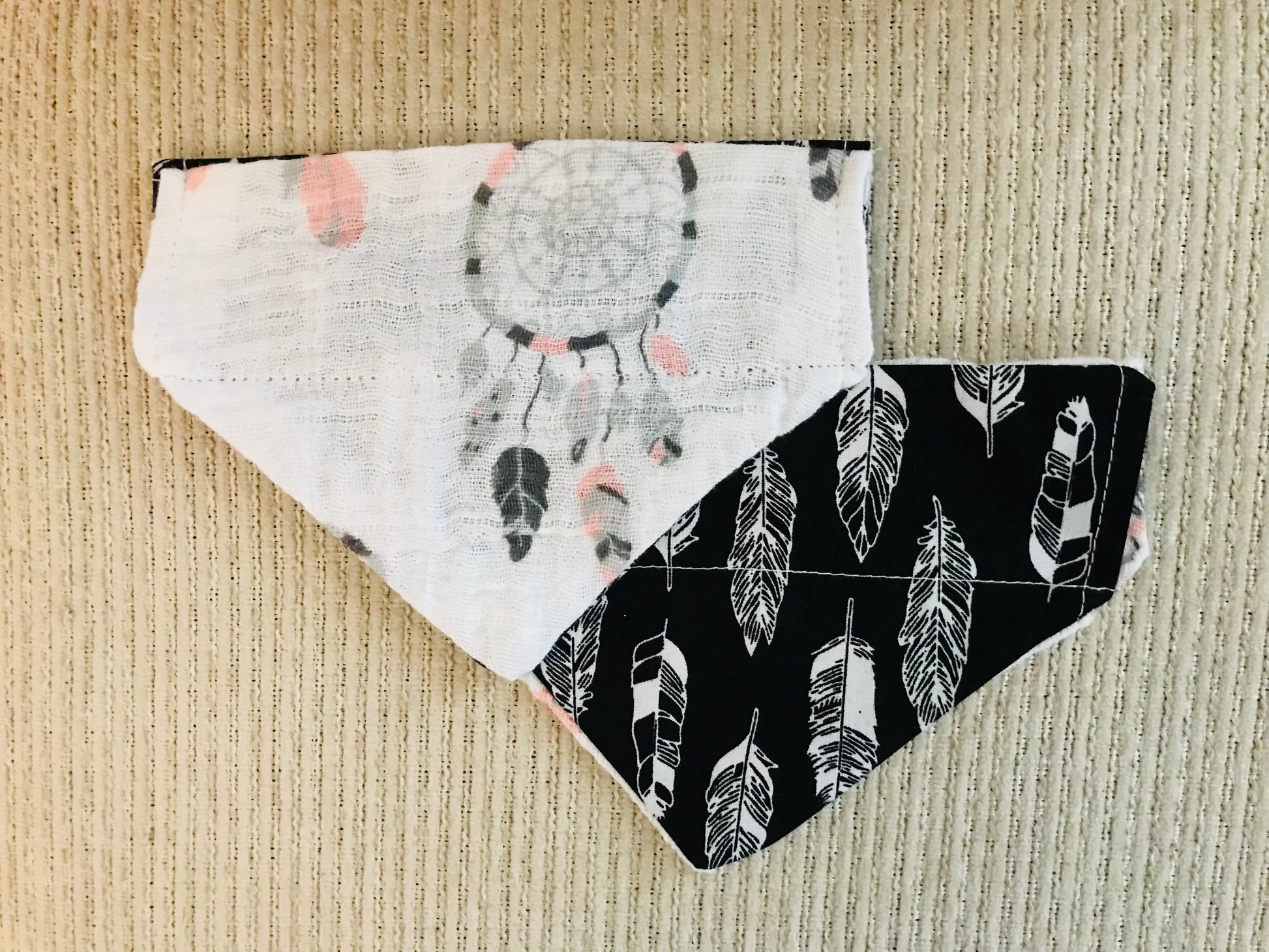 Reversible Bandana: Dream Catchers on one side and White Flowers (Black background) on the other side