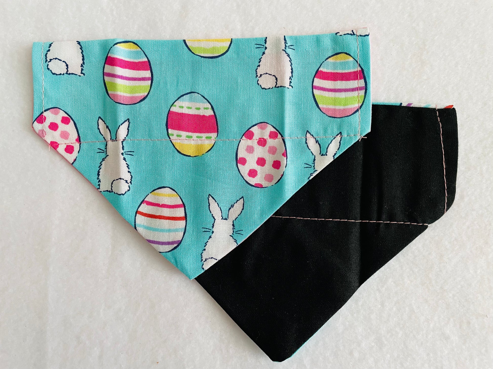 Reversible Bandana: Easter Bunnies & Eggs on one side and Solid Black on the other side