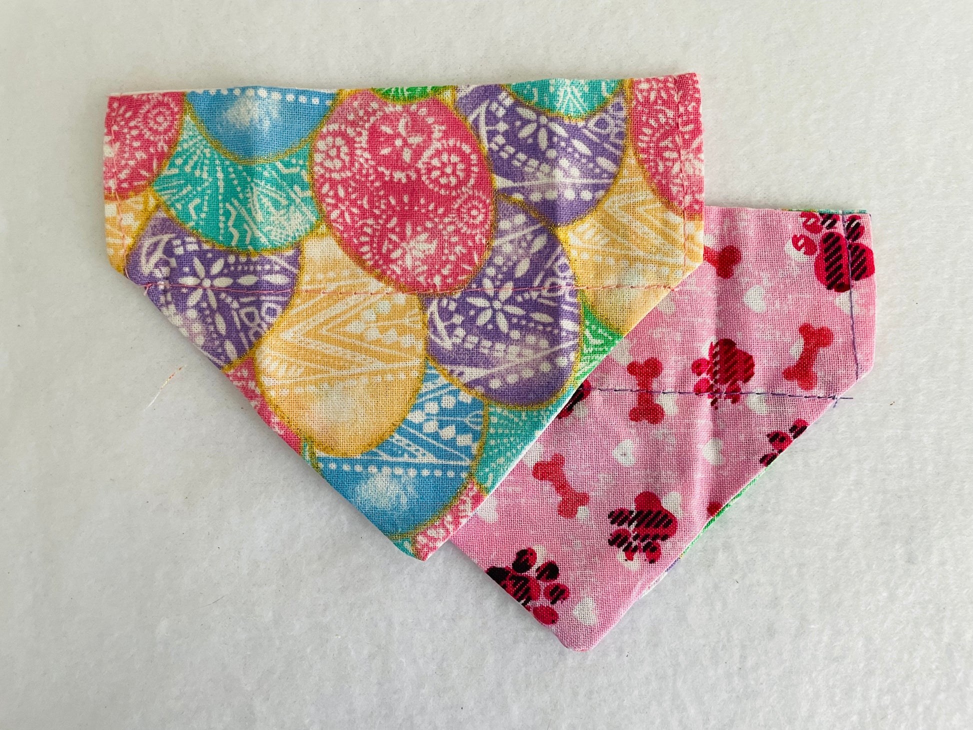 Reversible Bandana: Easter Eggs on one side and Pink Pawprints & Bones on the other side