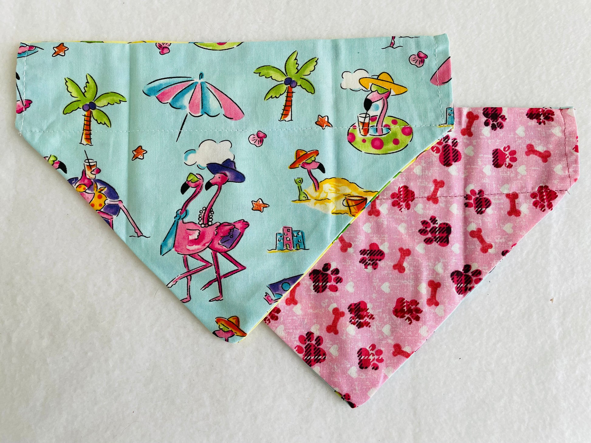 Reversible Bandana: Flamingos on one side and Pink Pawprints & Bones on the other side