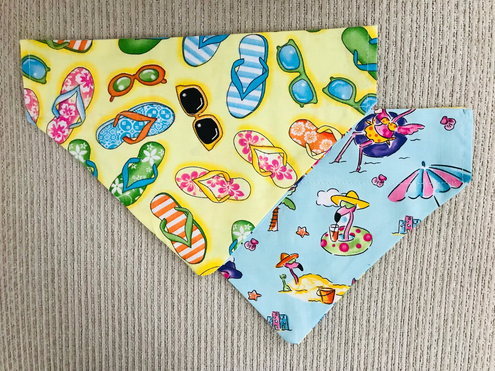 Reversible Bandana: Flip Flops & Sunglasses on one side and Flamingos on the other side