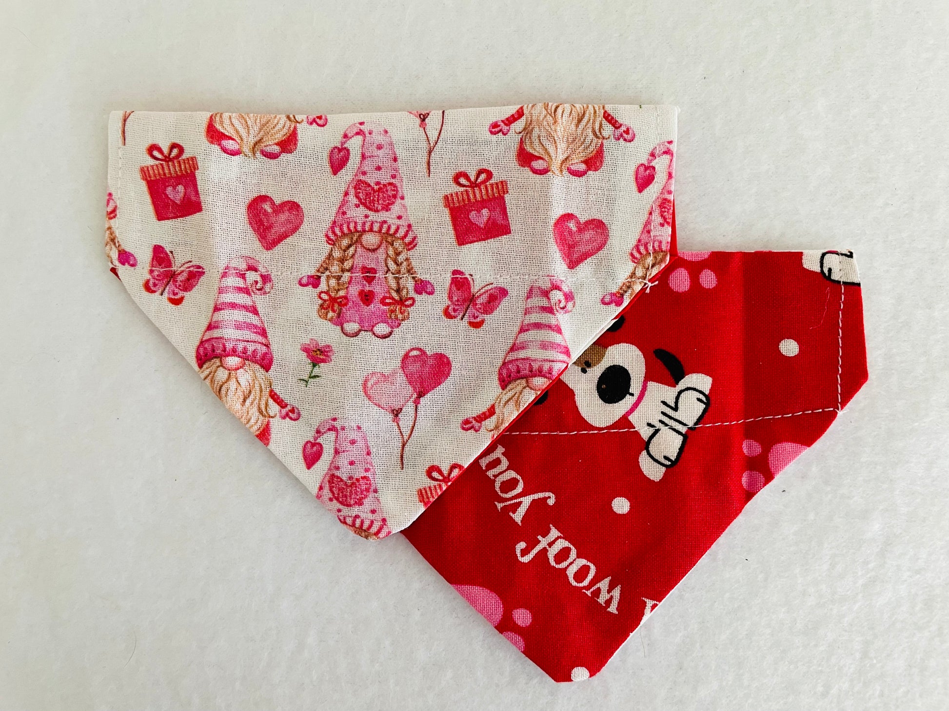 Reversible bandana: Gnomes on one side and Dogs/I Woof You! on the other side