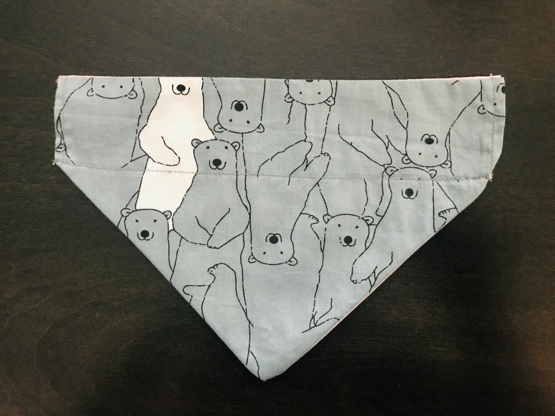 Reversible Bandana: Grey Bears (1 White) on one side and Solid Light Pink on the other side