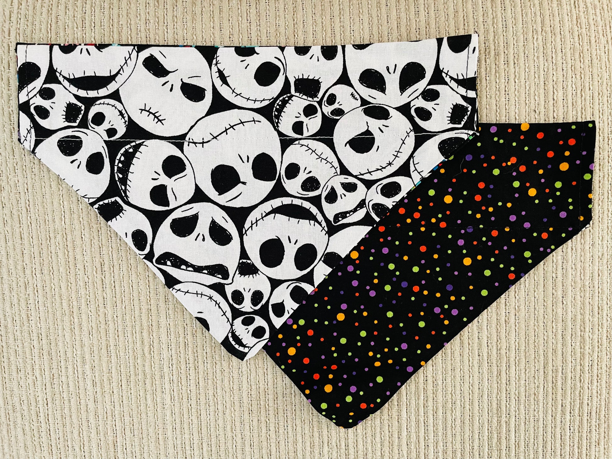 Reversible Bandana: Jack Skeletons on one side and Multi-Colored Polka Dots on the other side