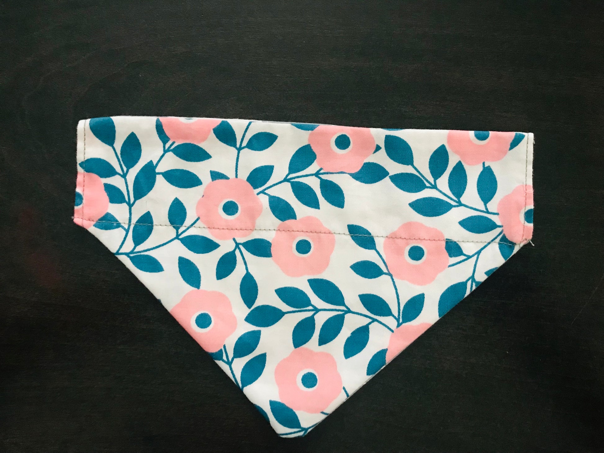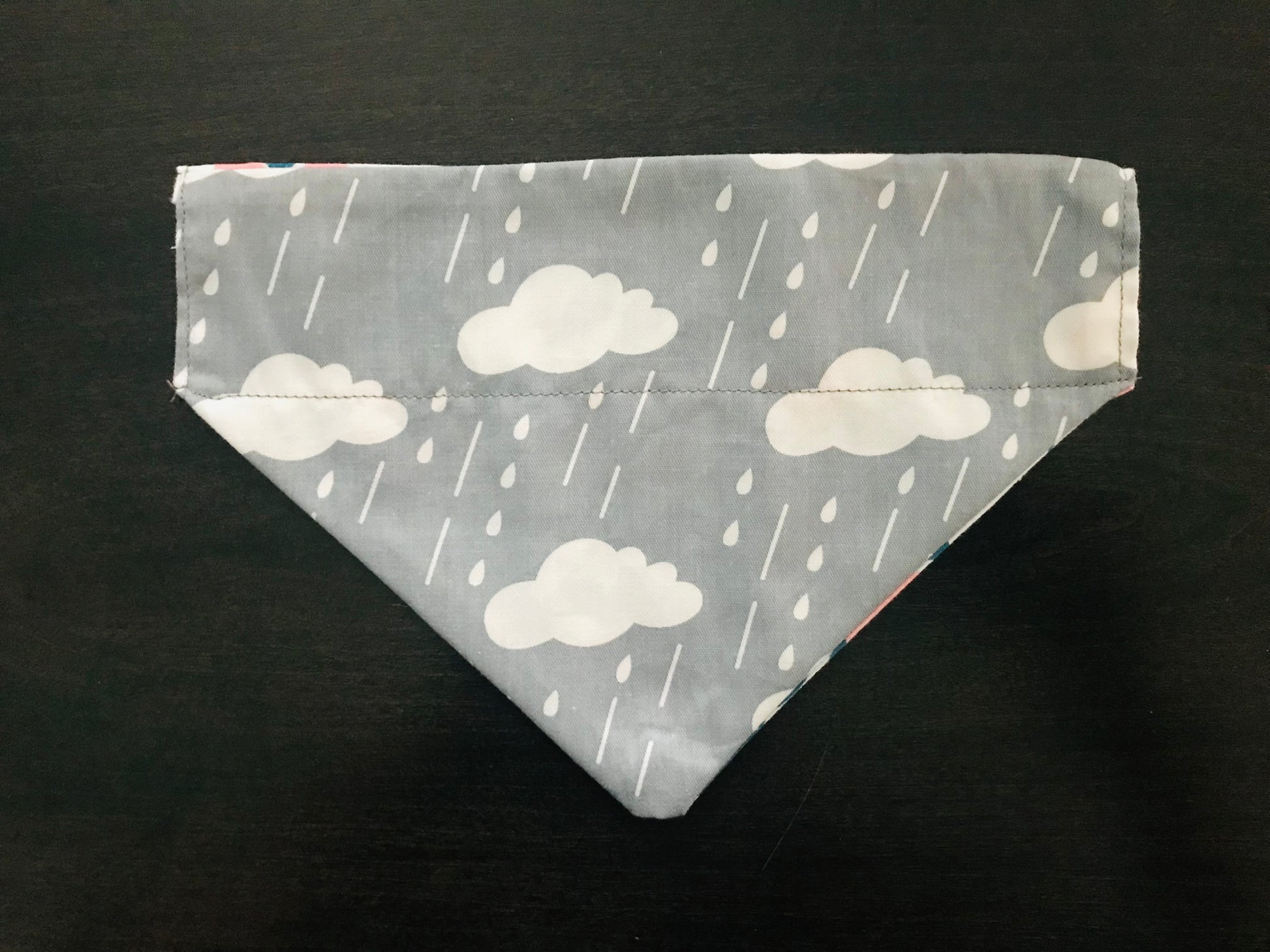 Reversible Bandana: Pink Flowers & Green Leaves on one side and Clouds & Rain on the other side