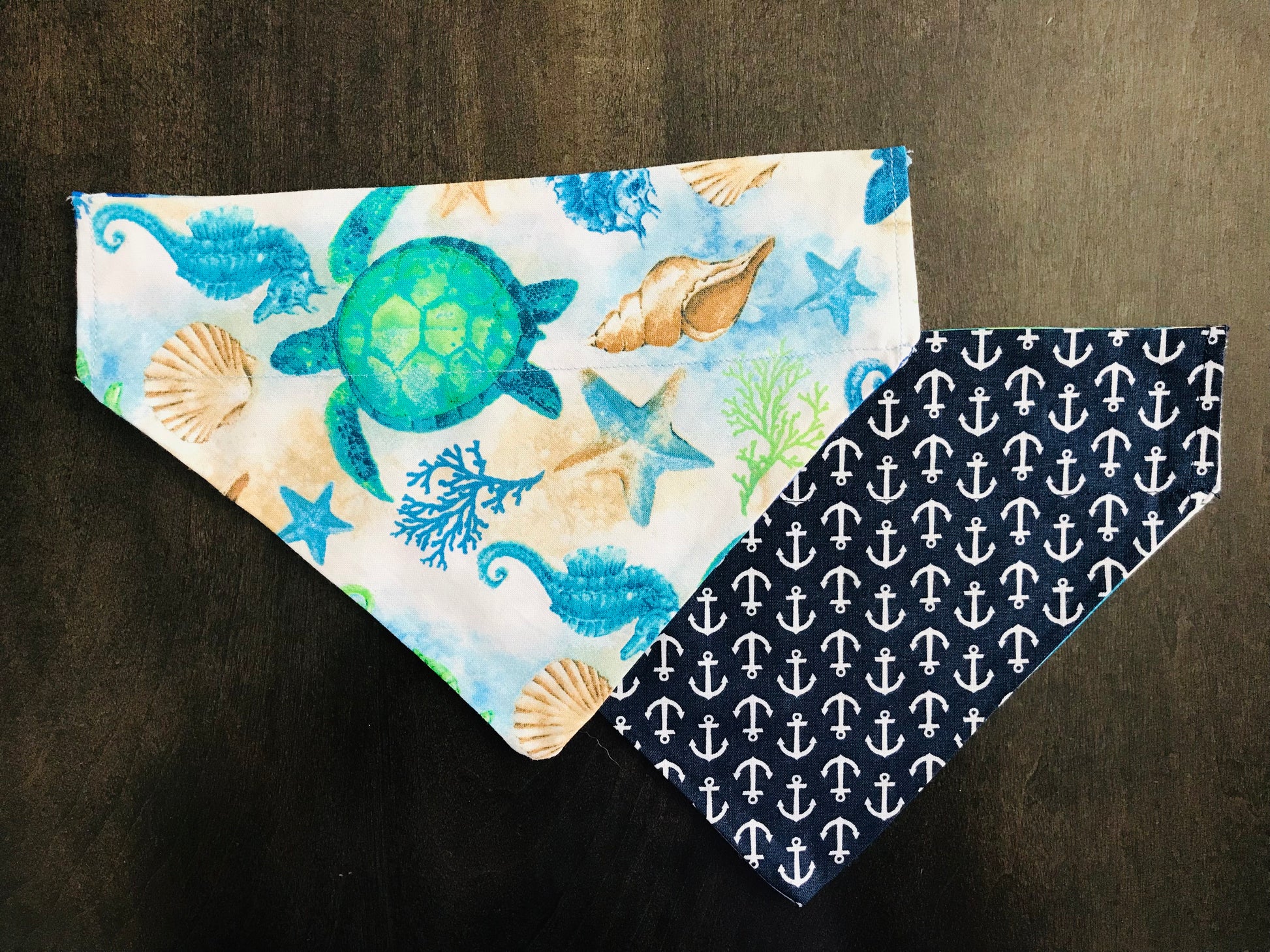 Reversible Bandana: Sea Turtles & Sea Horses on one side and White Anchors (Blue background) on the other side