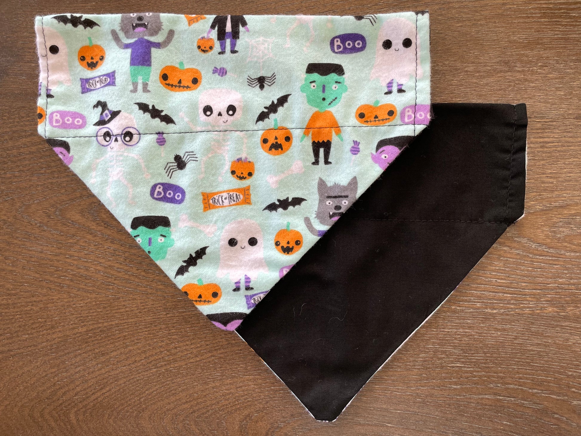 Skeletons, Frankenstein, Werewolves and Ghosts on one side and solid black on the other side