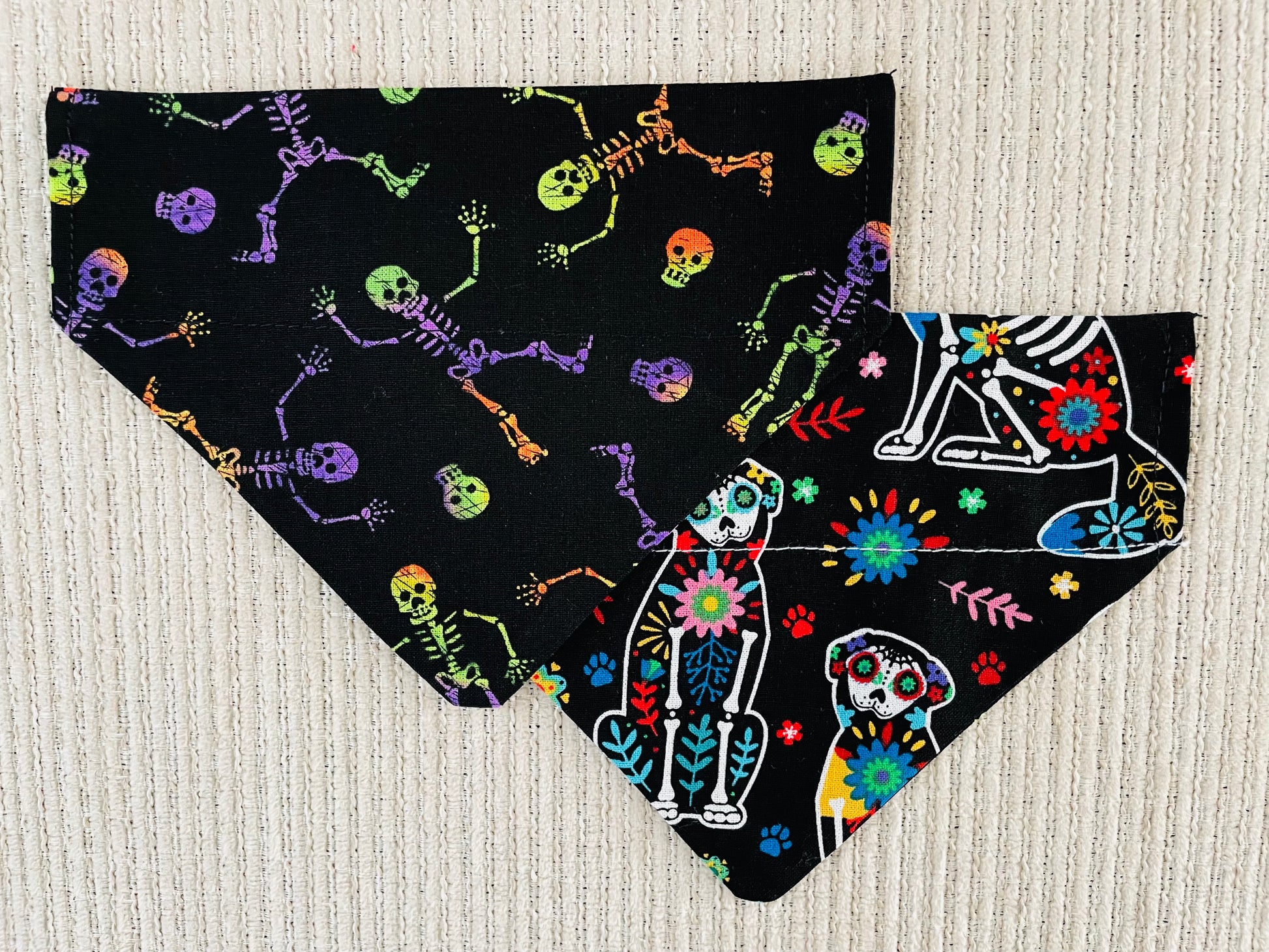 Reversible Bandana: Skeletons on one side and Skeleton Dogs on the other side