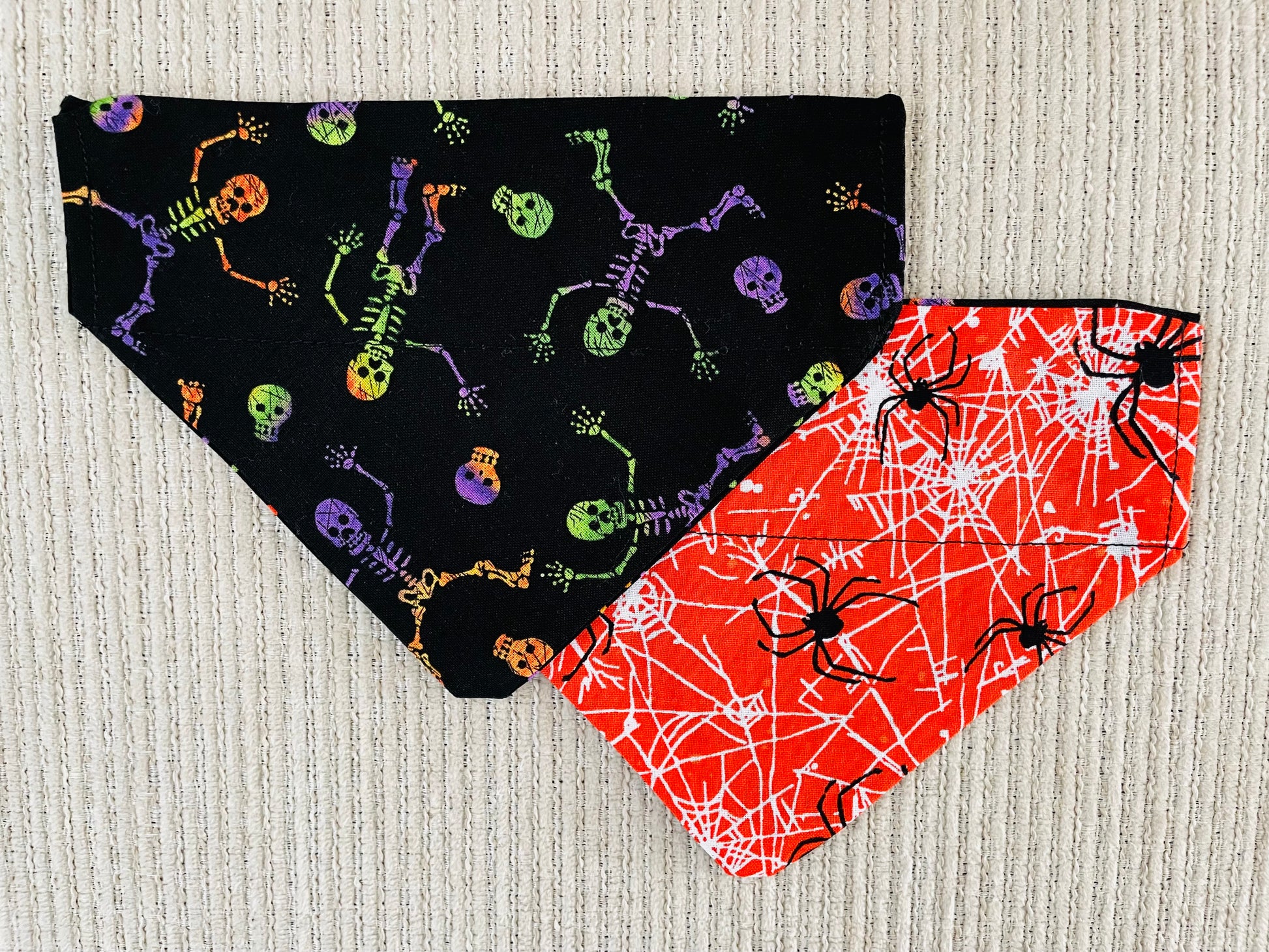 Reversible Bandana: Skeletons on one side and Spiders on the other side
