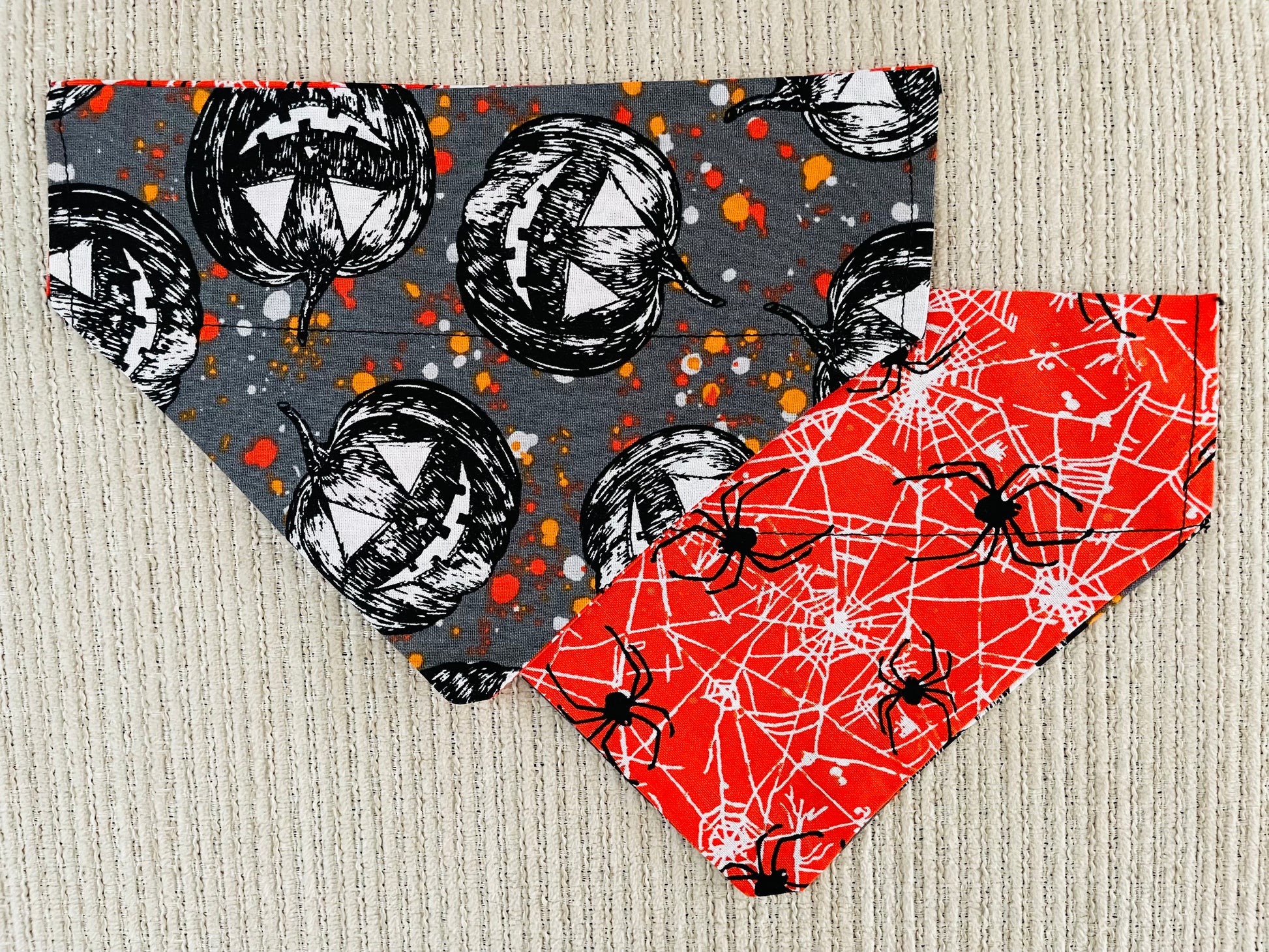Reversible Bandana: Spooky Pumpkins on one side and Spiders on the other side