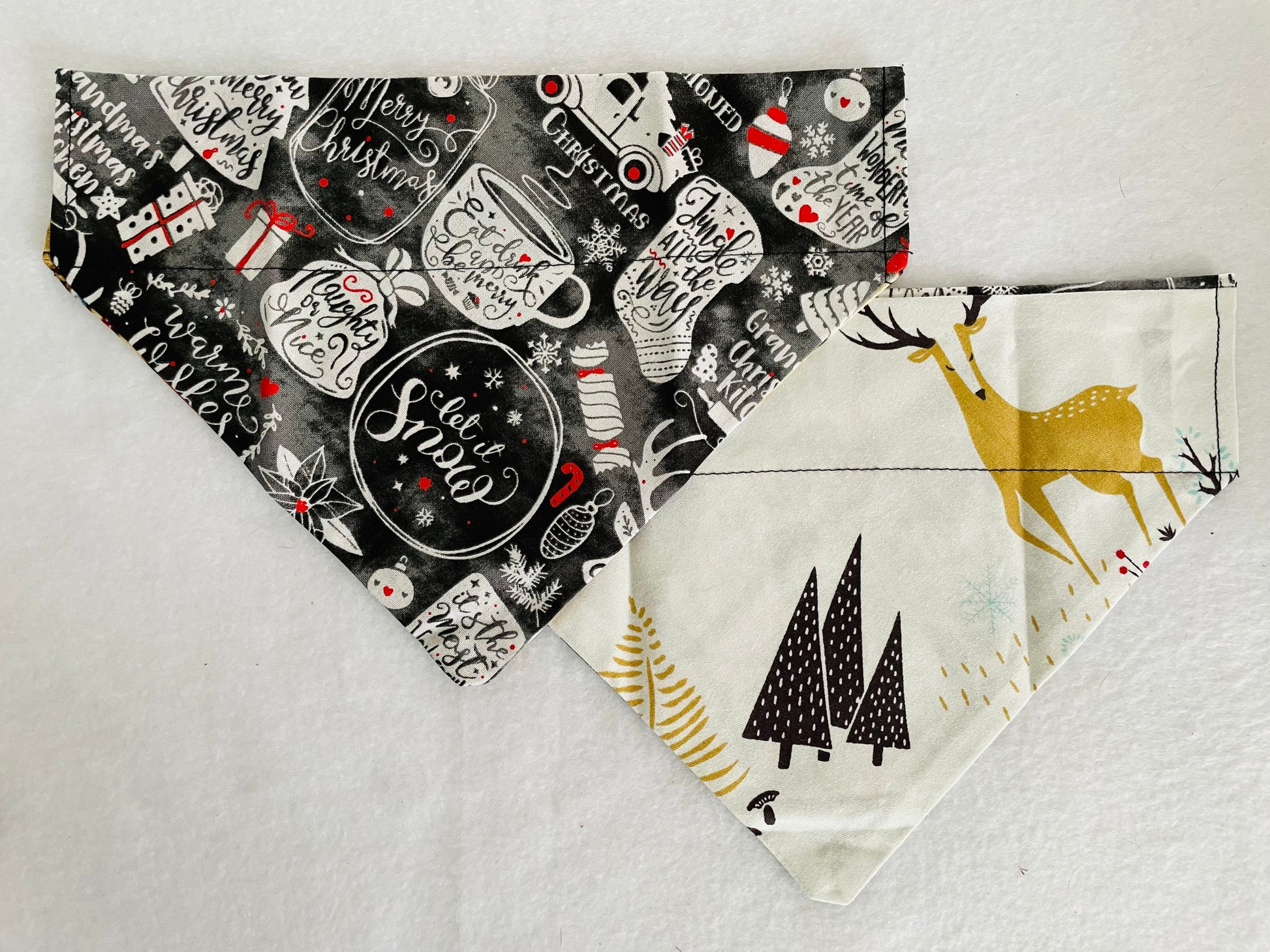Reversible Bandana: Winter Phrases on one side and Christmas Deer on the other side